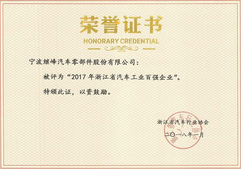 2017年浙江省汽車工業(yè)百?gòu)?qiáng)企業(yè)