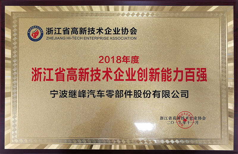 2018年度浙江省高新技術(shù)企業(yè)創(chuàng)新能力百?gòu)?qiáng)